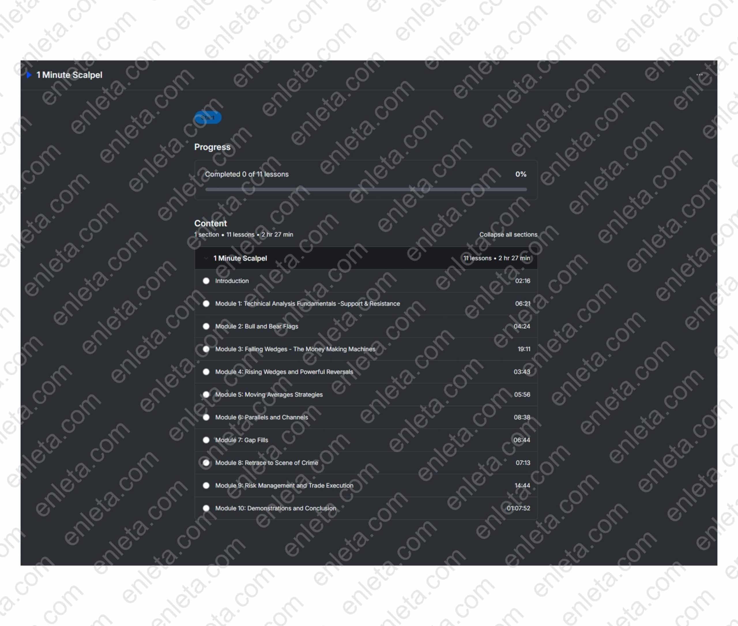 Because trading on such short time frames magnifies mistakes, the course dedicates attention to position sizing, stop management, and discipline under pressure.