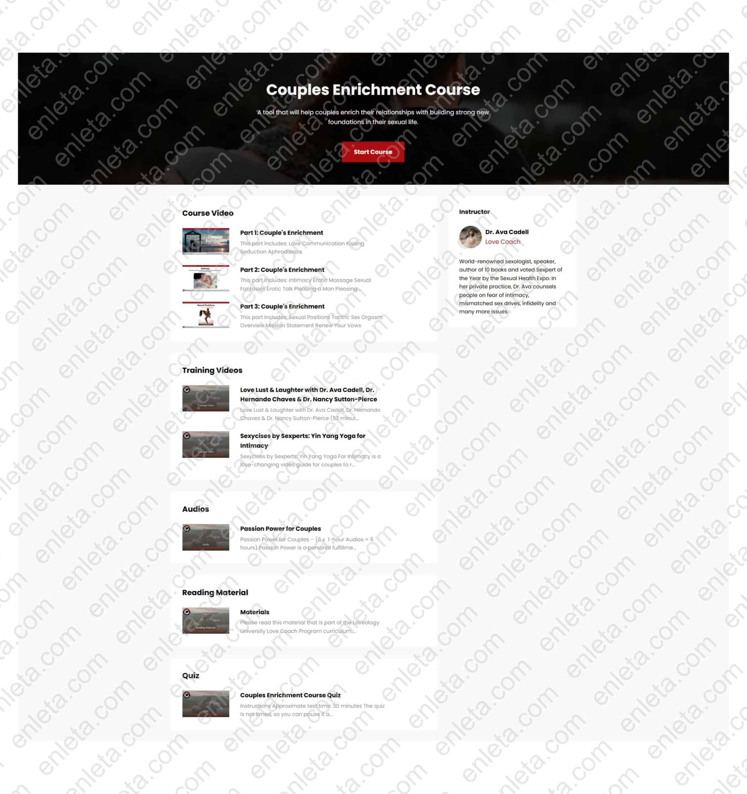 Couples Enrichment Course – How Couples Can Enrich Their Love Lives and Fall In Love Again by Ava Cadell