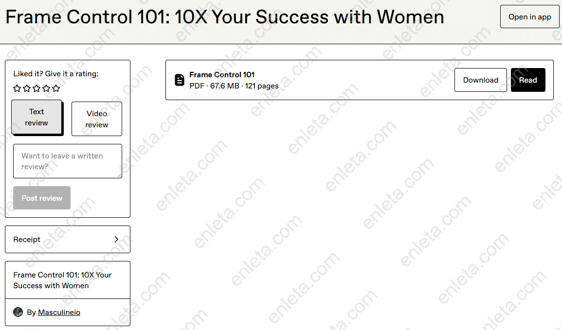 PDF Sample – Frame Control 101: 10X Your Success with Women by Masculineio, watch here: