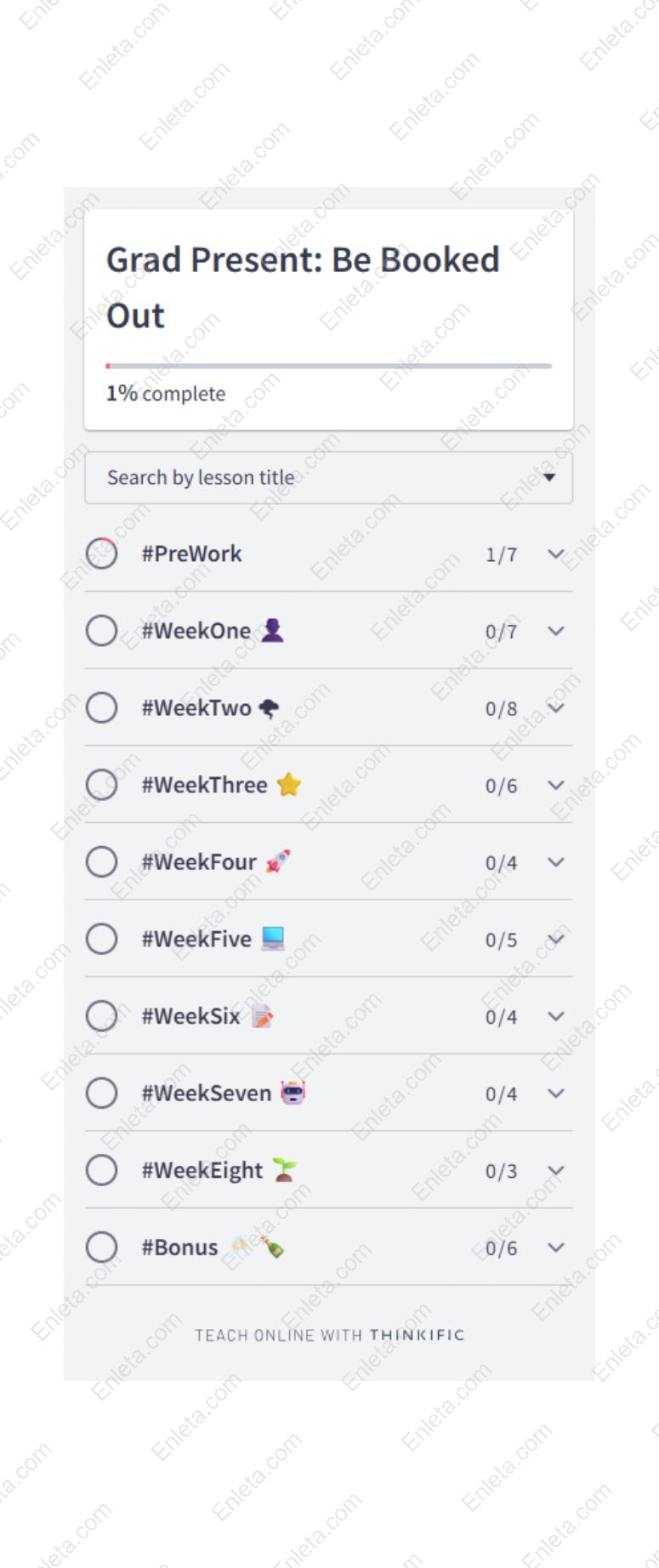 Grad Present: Be Booked Out is structured around modules that cover identity clarity, visibility strategies, messaging, offer creation, client pathways, and promotional funnels. It uses case studies, worksheets, video lessons, and action steps so that learners move from concept into execution. Over time, you’ll move from the mindset of being “just graduated” to someone who is seen, trusted, and in demand.