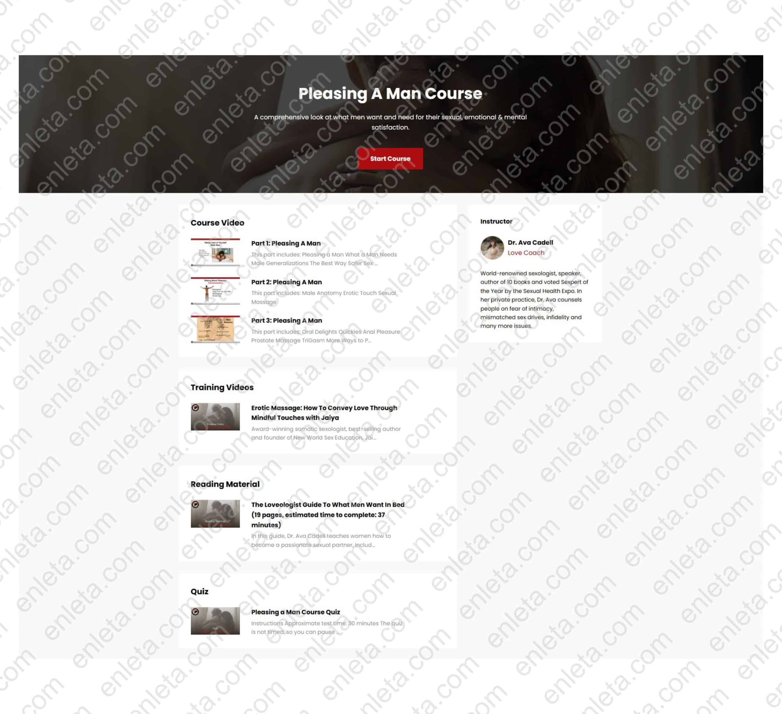 Pleasing A Man Course – How to Pleasure Your Man’s Most Erotic Desires by Ava Cadell Free Download, Watch content proof here:
